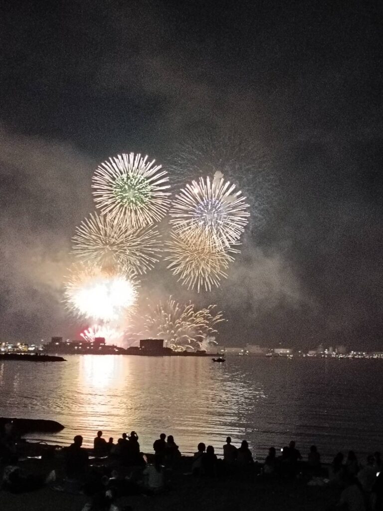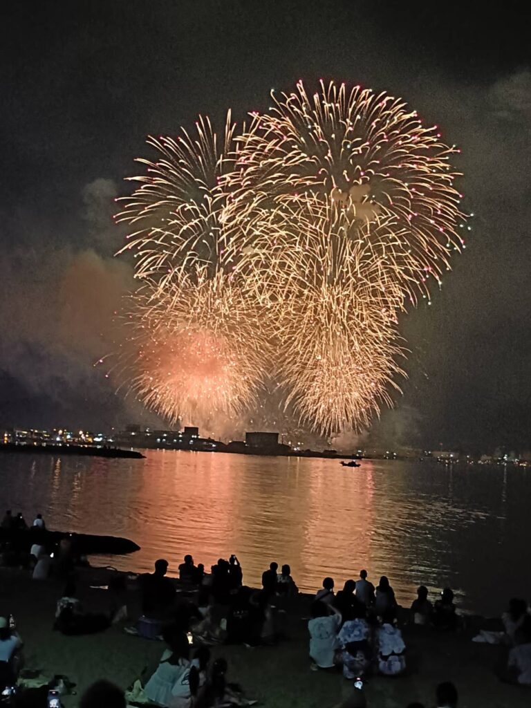 今回の三津浜花火大会は海岸で見ることができ、水面に映った花火もきれいで迫力がありました!